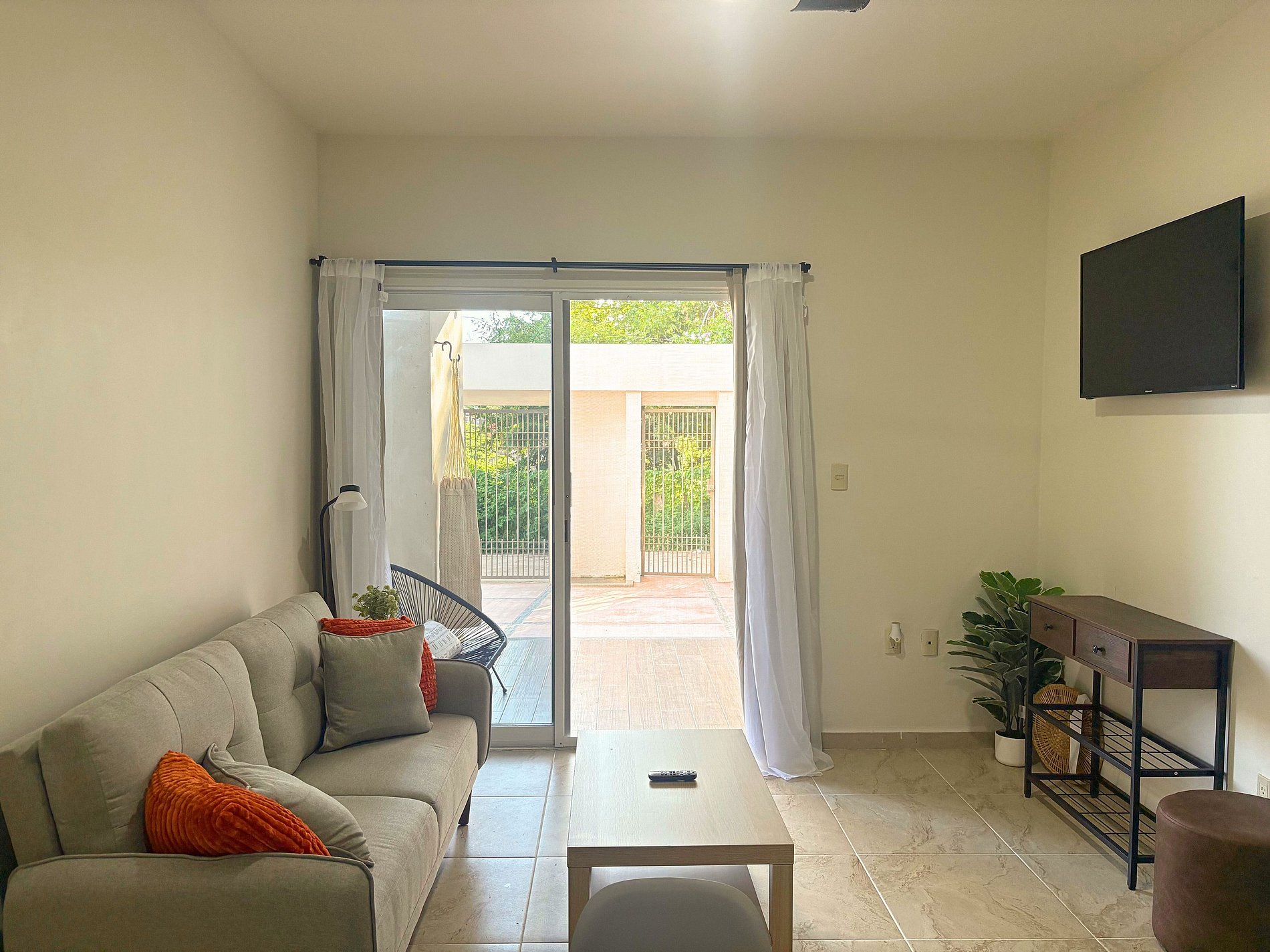 Este apartamento de 2 dormitorios está totalmente equipado con todo lo necesario para una estancia cómoda en Puerto Escondido. El departamento se encuentra en planta baja, cuenta con 2 recámaras una con cama Queen y la segunda matrimonial, y amplio espacio de guardarropas; 1 baño completo; una cocina totalmente equipada con nevera y congelador grande, cocina y horno a gas, microondas, cafetera, tostadora, licuadora y todos los utensilios de cocina que uno pueda necesitar para cocinar a su gusto; mesa de comedor; y sofá en la sala de estar con un televisor con roku que se conecta a todos tus servicios de transmisión favoritos (las cuentas no están incluidas). Hay un patio privado en la parte delantera del apartamento con vista a la piscina y un balcón separado en la parte trasera del apartamento, perfecto para lavar/secar la ropa y guardar sus cosas. El apartamento cuenta con aire acondicionado en ambas habitaciones y wifi Starlink de alta velocidad.